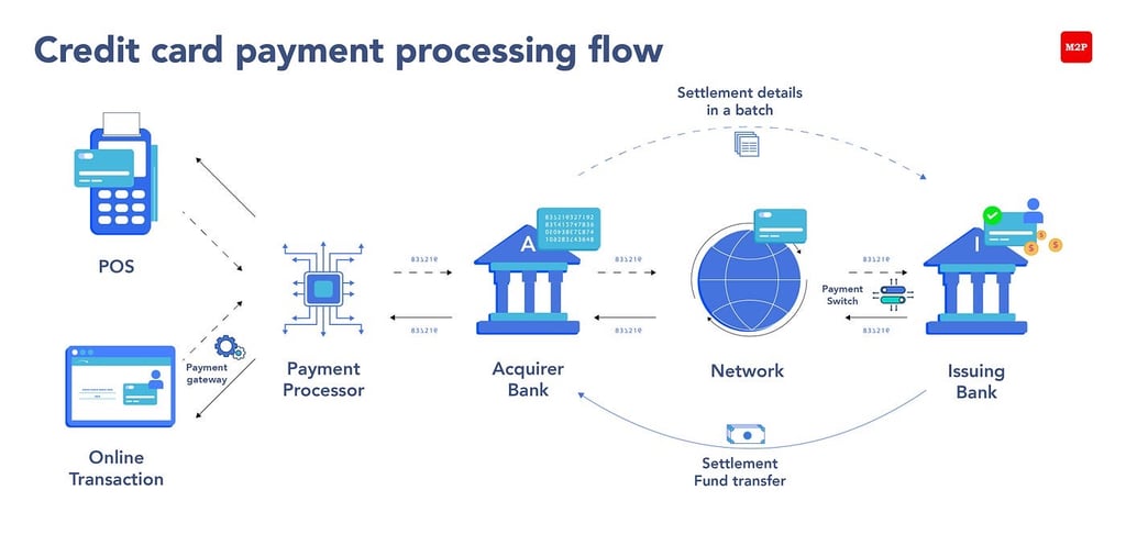This process involves major card networks like Visa, Mastercard, American Express, and Discover, as well as your processor and acquiring bank.